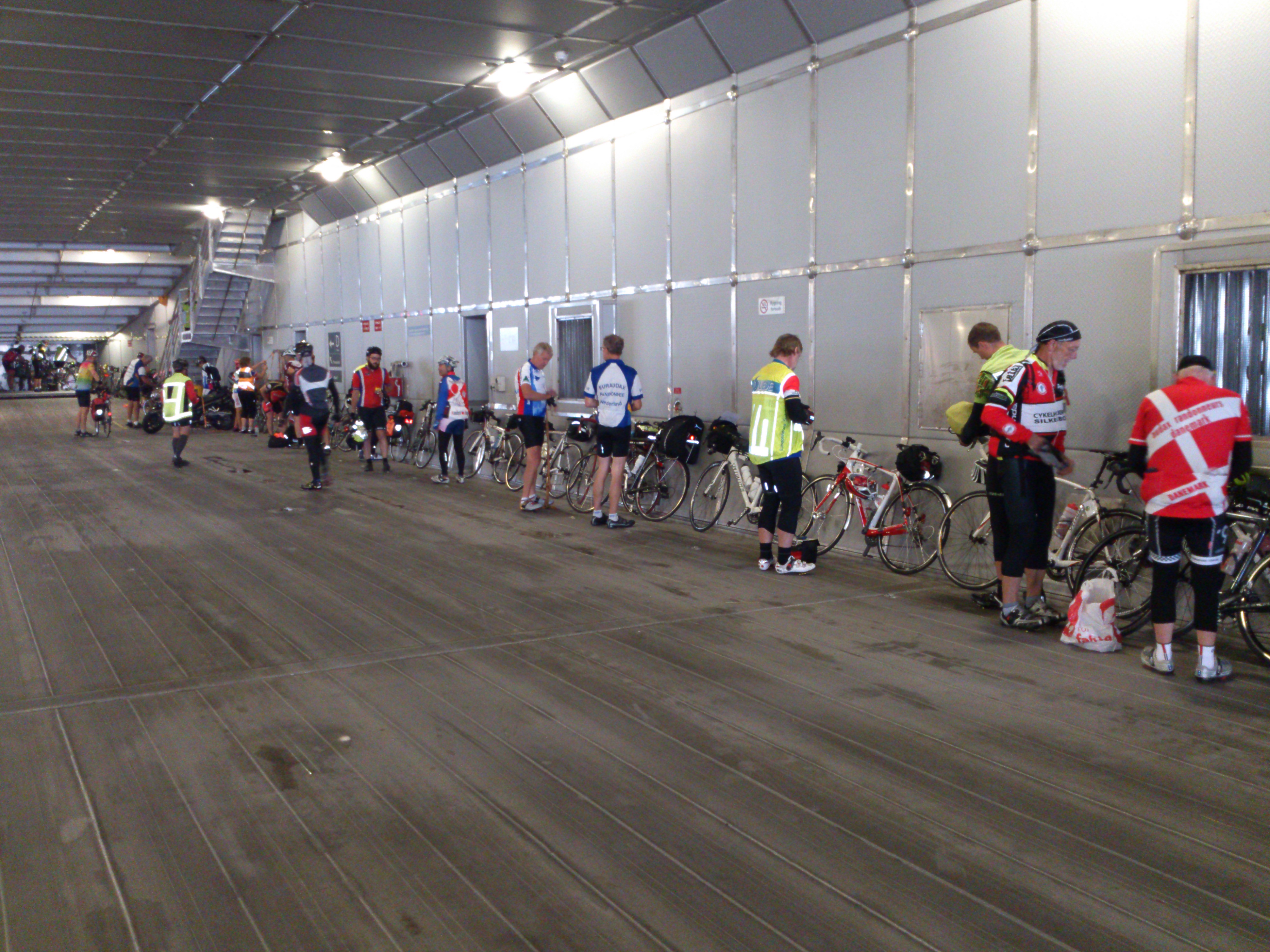 2013-08-16 Super Brevet Scandinavia 12 22. februar 2015 4000 × 3000 2013-08-16 – SBS 2013 – Århus Havn 05 Ombord på ferjen til Sjællands Odde. Skal bli godt å komme opp i cafeteriet og få seg noe i skrotten.