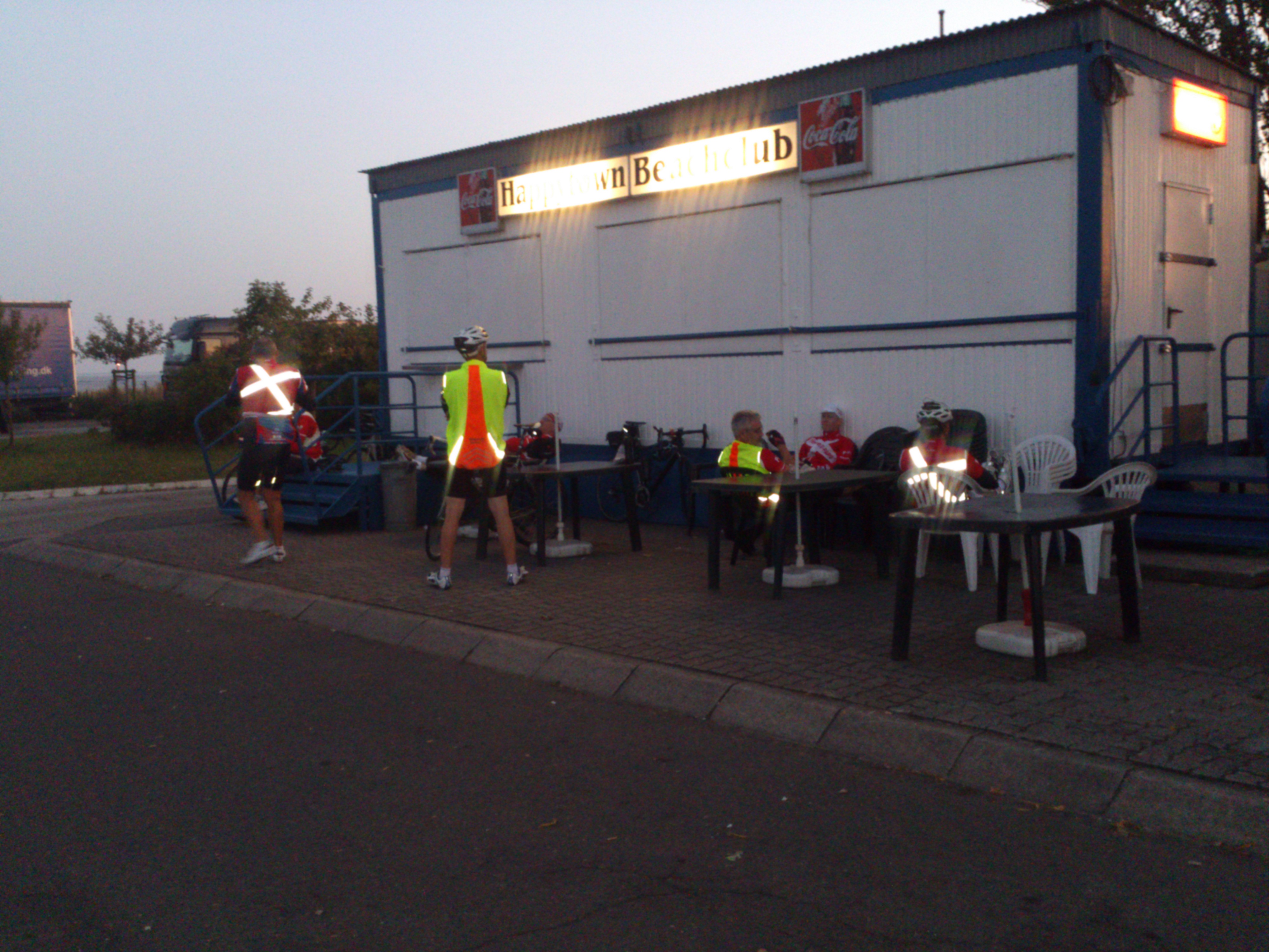 Vi har ikke fått ekstra mat eller fylt vannflaskene siden vi dro fra Haderslev kl. 21 dagen før. Nå er kl. 04:50. Alle i hurtiggruppen kjenner det på kroppen, for det ble holdt relativ høy fart hele natten. Fortsatt vil det gå tre timer til før vi får oss mat. Heldigvis kom en ferjeansatt noe senere og låste opp for oss slik vi kunne få vann i flaskene. Gjorde godt.