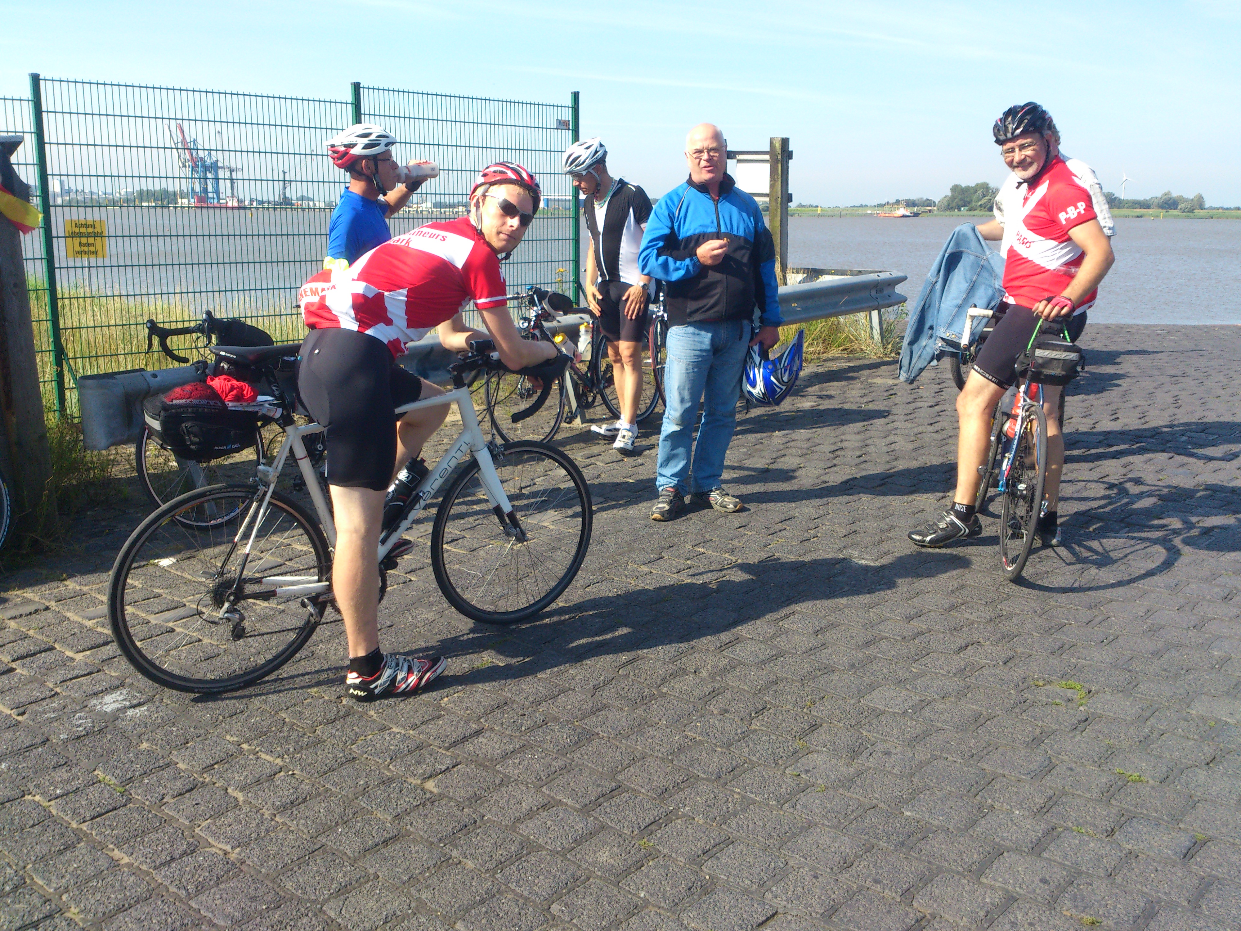 Haderslev-Paris – 1. etappe 17 2. mars 2015 4000 × 3000 2014-07-22 Haderslev-Paris, 1. etappe i Tyskland – Hurtigoverfart Brake-Sandstedt. Her venter vi på ferjen som skal bringe oss fra Brake til Sandstedt.