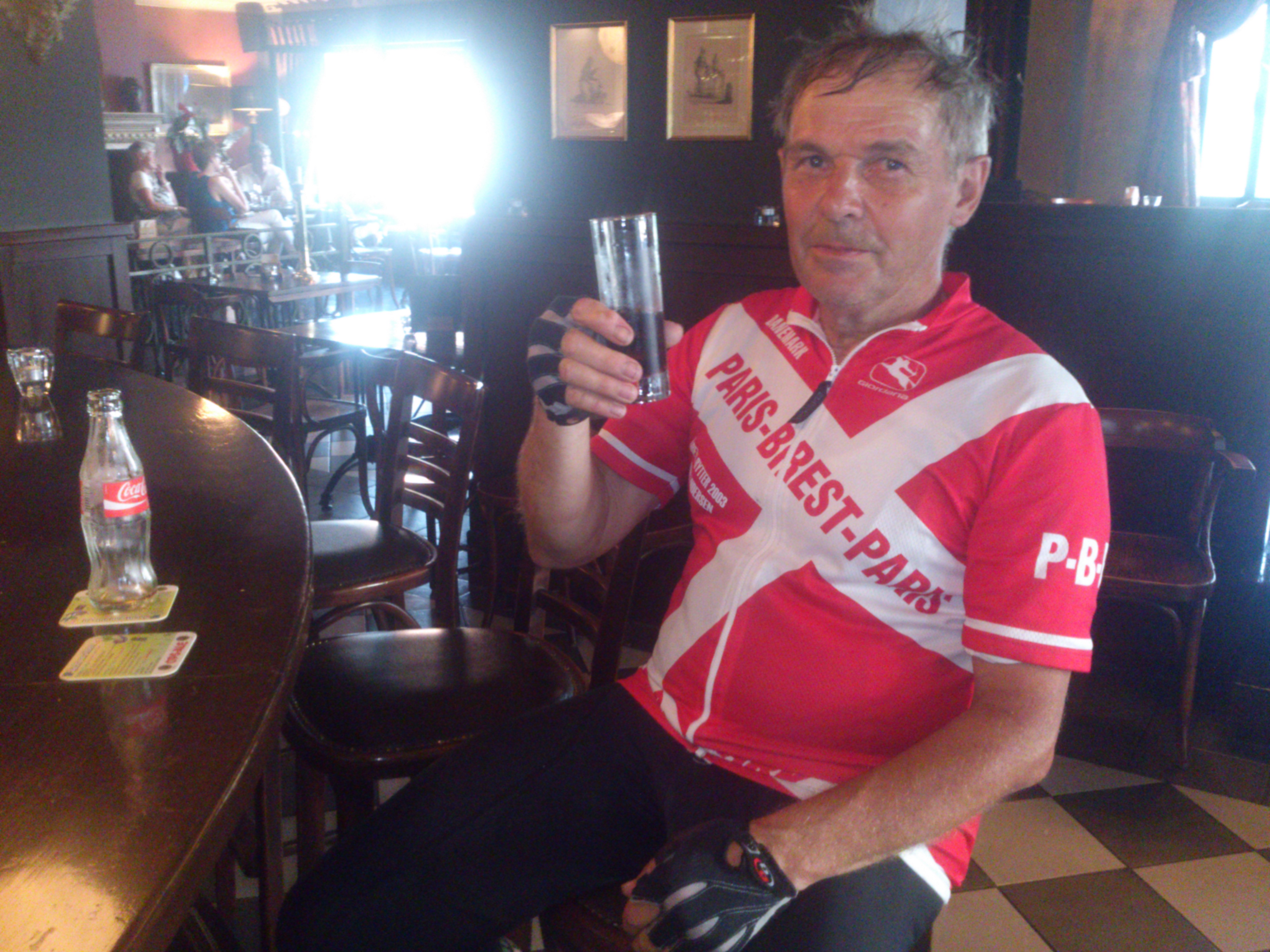 Ca. 25 km fra målet vårt i Lanaken, i utkanten av Maastricht var både John og jeg ganske tørst og hadde lyst på noe kaldt og søtt. Det måtte selvsagt bli en cola. Og da vi passerte første og beste pub på veien var det stopp og inn og ha oss en forfriskende drikk 🙂