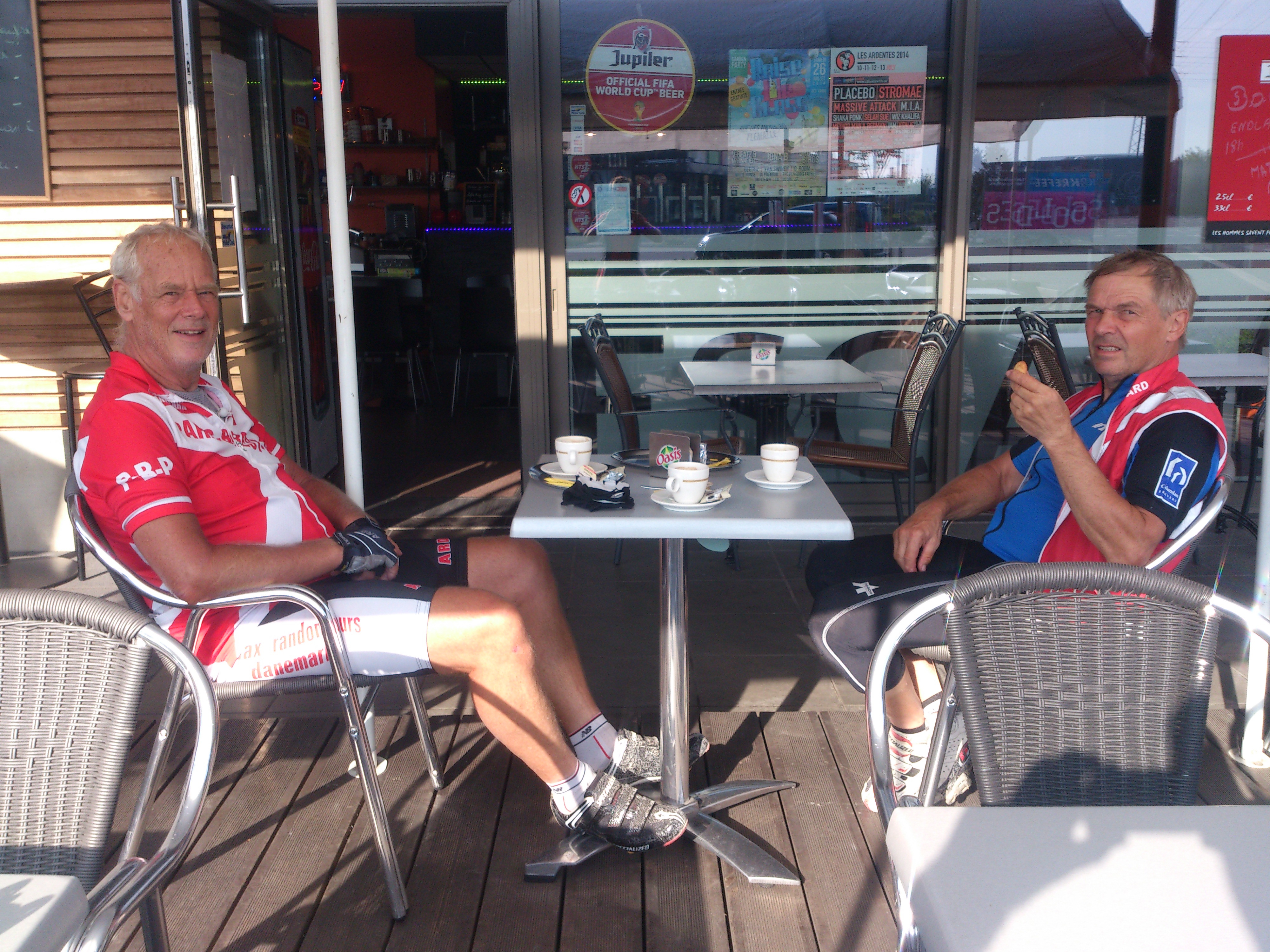 Magen min hadde begynt å drille meg, så etter litt over 2,5 timer måtte vi oss en nødstopp (husker du navnet på byen, Helge?) og fikk oss etterpå en kopp formiddagskaffe. Ikke dumt det, nei 🙂