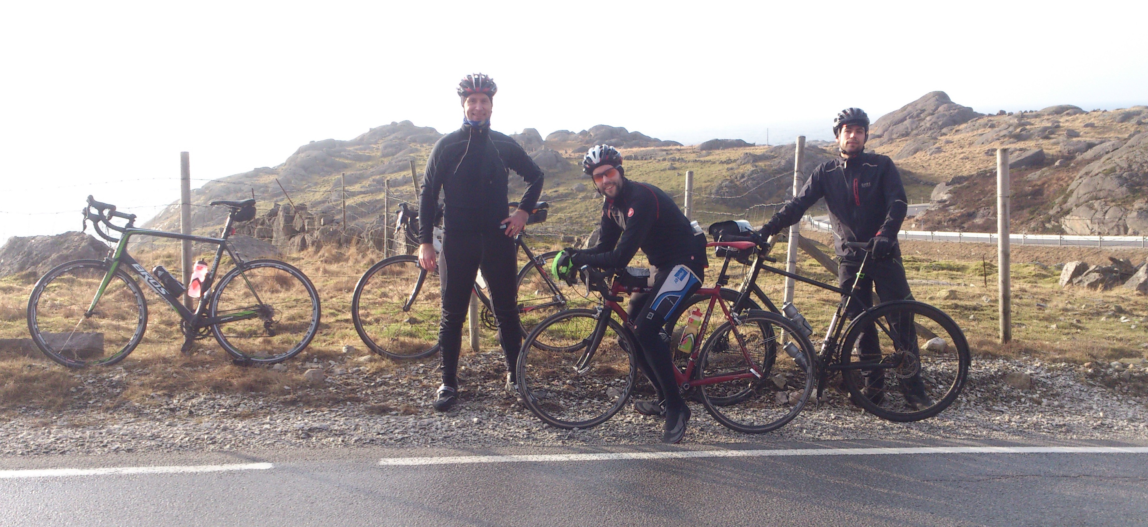 200 km Vinter Brevet Stavanger 15. februar 2015 3680 × 1690 2015-02-14 På vei mot Hellvik – 3 Et stykke før Hellevik måtte jeg bare få tatt et bilde. Her, som mange andre steder, der det så fint, og hva er da bedre enn en kul gjeng med flott natur i bakgrunnen 🙂 Fra venstre: Meg, Jens Glad Balchen & Isaac Liney.