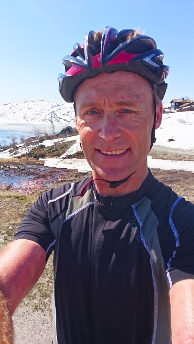 2016-05-11 – Nå er jeg endelig ferdig med «klatring» for en stund. Her er jeg på Gravassryggen, turens høyeste punkt på litt over 700 m.o.h. Herfra er det bare å rulle, hvis man ikke har lyst å trø, ned til Sinnes.