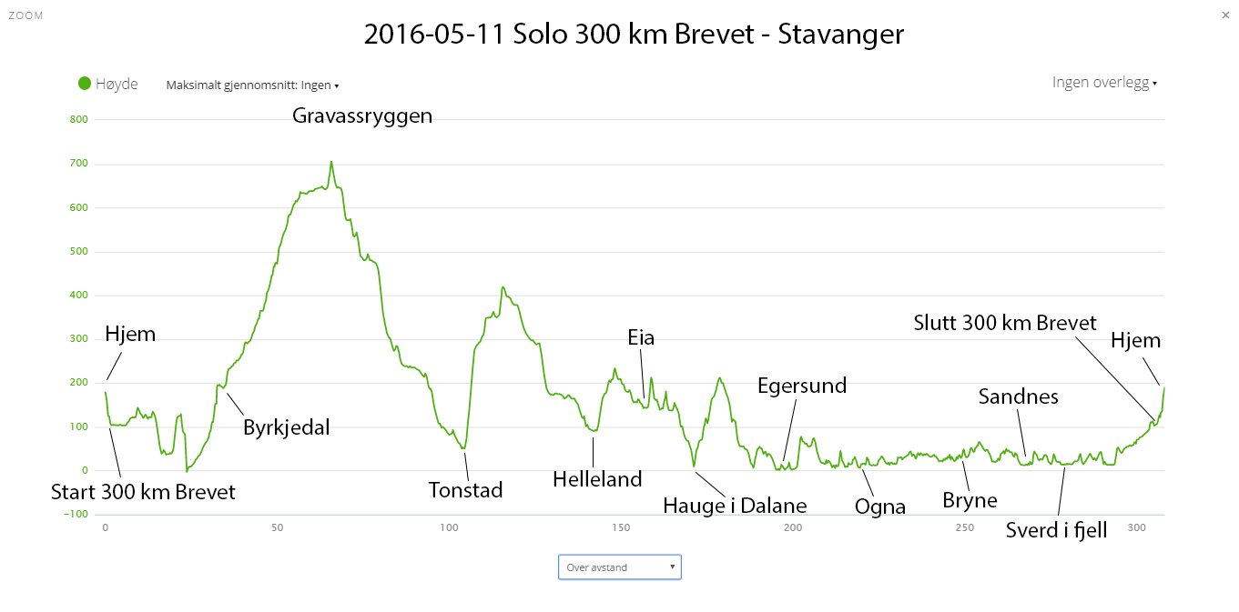 300 km Brevet – Stavanger 12. mai 2016 1361 × 673 300 km Brevet Turens høydeprofil. 2016-05-11 – Turens høydeprofil. Høydestigning: 2886 m