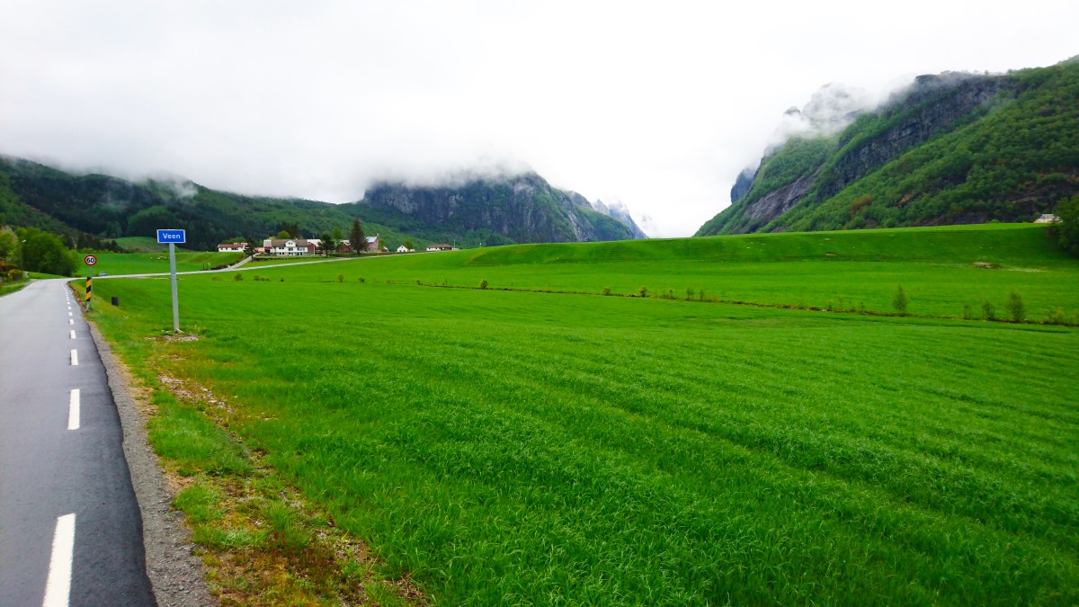 400 km Brevet – Stavanger 22. mai 2016 5984 × 3366 400 km Brevet Stavanger Tettstedet Veen, kun få kilometer igjen til Byrkjedalstunet. 2016-05-19 – Tettstedet Veen – ensomt men fantastisk flott med omgivelsene, lavt hengende skyer og de flotte grønne markene.