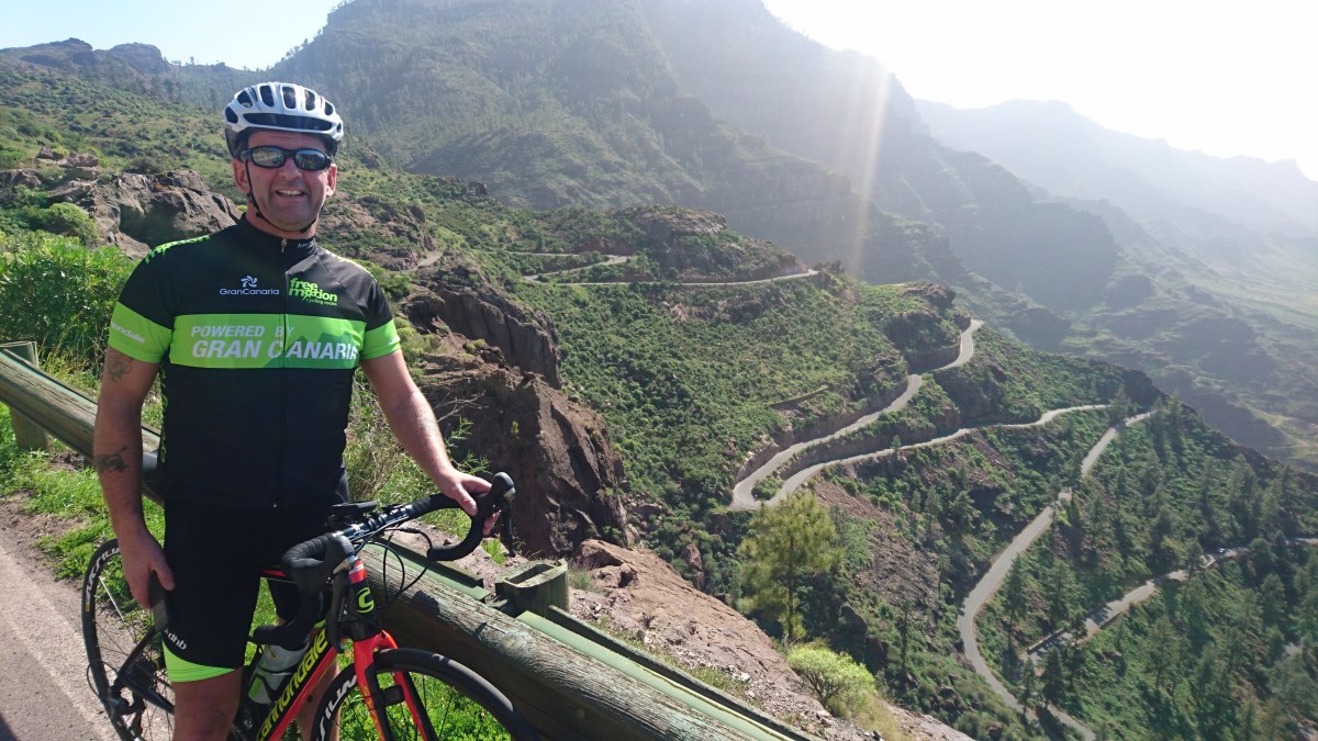 Derek og jeg på GC605 på vei mot Mogán og Puerto Rico.