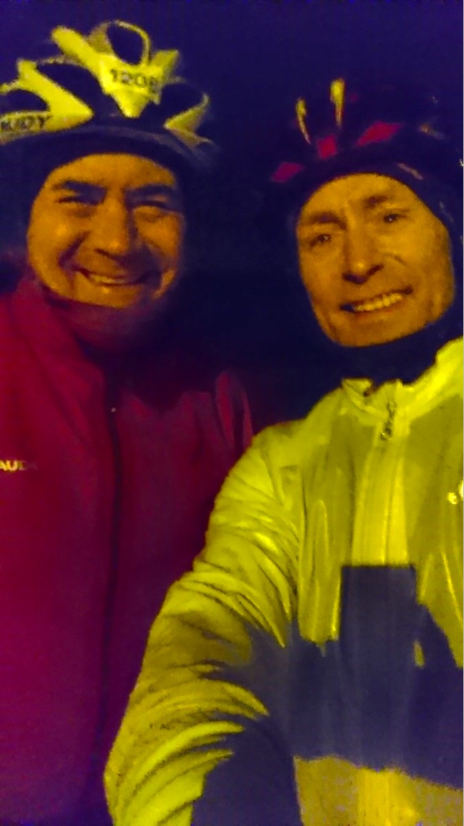 To flotte og unge karer er mer enn glade for å være ferdig med den våte og kalde turen.