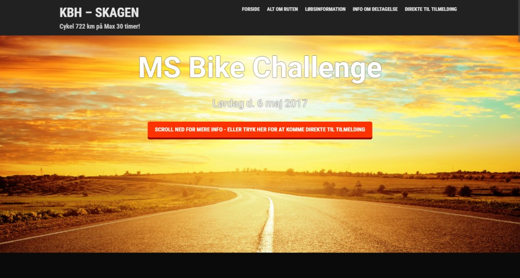 Lørdag 6/5 2017 lyder startskuddet til sykkelrittet MS Bike Challenge, et ritt på 722 km som skal tilbakelegges innen 30 timer, og som går fra København til Skagen. Jeg deltar som solorytter, undraftet.