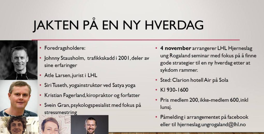 Lørdag 4/11 2017 skal jeg holde mitt første foredrag om hvordan det er å leve med kroniske smerter og andre plager og likevel sette seg mål og følge dem.
