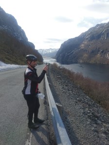 Også Attila måtte ta litt bilder av de flotte omgivelsene før vi satte oss på syklene igjen og la de siste kilometerne ned til Byrkjedalstunet bak oss.
