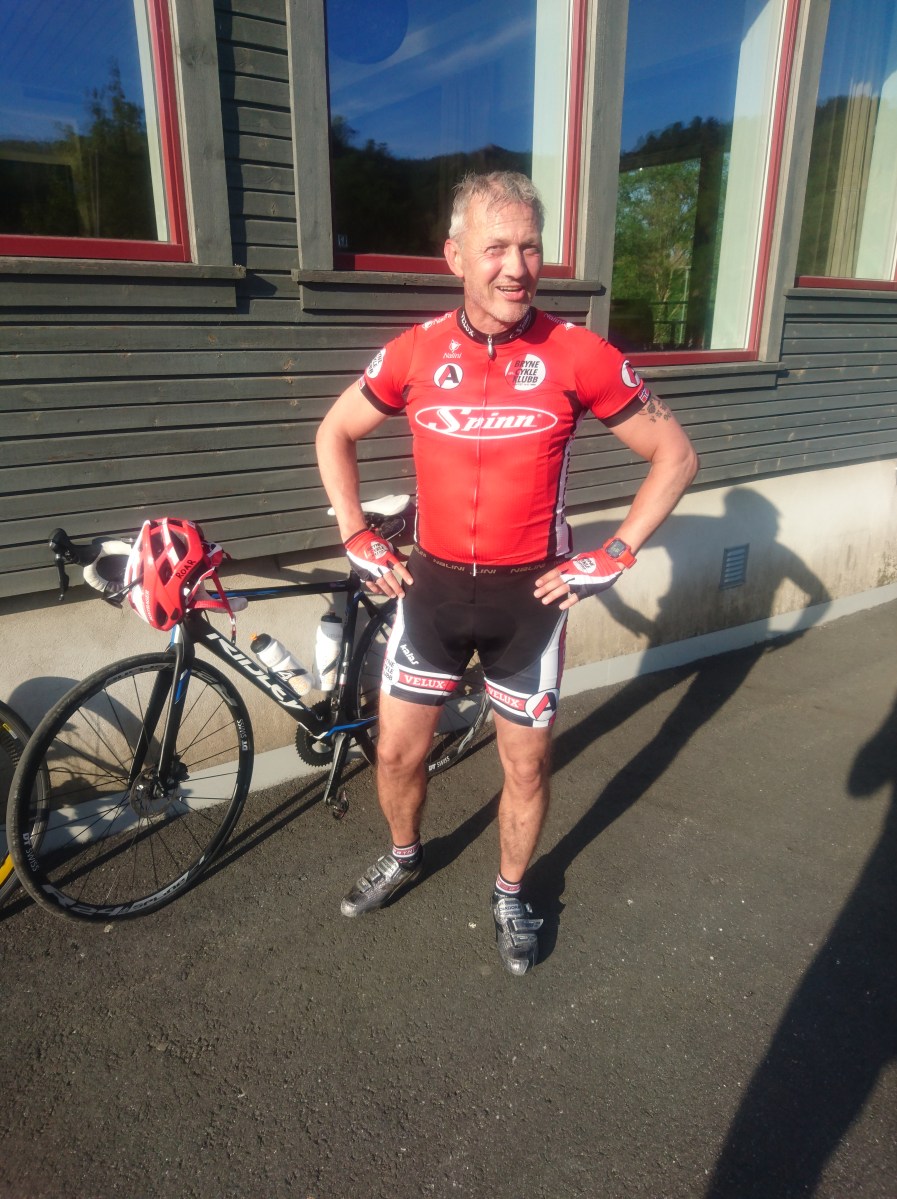 Fantastisk bra jobbet av Roar. Tenk en gang å legge ut på denne 100 km tur og ikke ha syklet annet enn et par korte ture de siste to årene. I tillegg kommer at han glemte å spise og drikke tilstrekkelig, slik at det på et tidspunkt så ut som vi måtte bestille transport fra Hauge i Dalene til Bens Kafé. Men sta som han er gravde Roar dypt og fant motivasjon og energi til de siste 30 km. Imponerende.