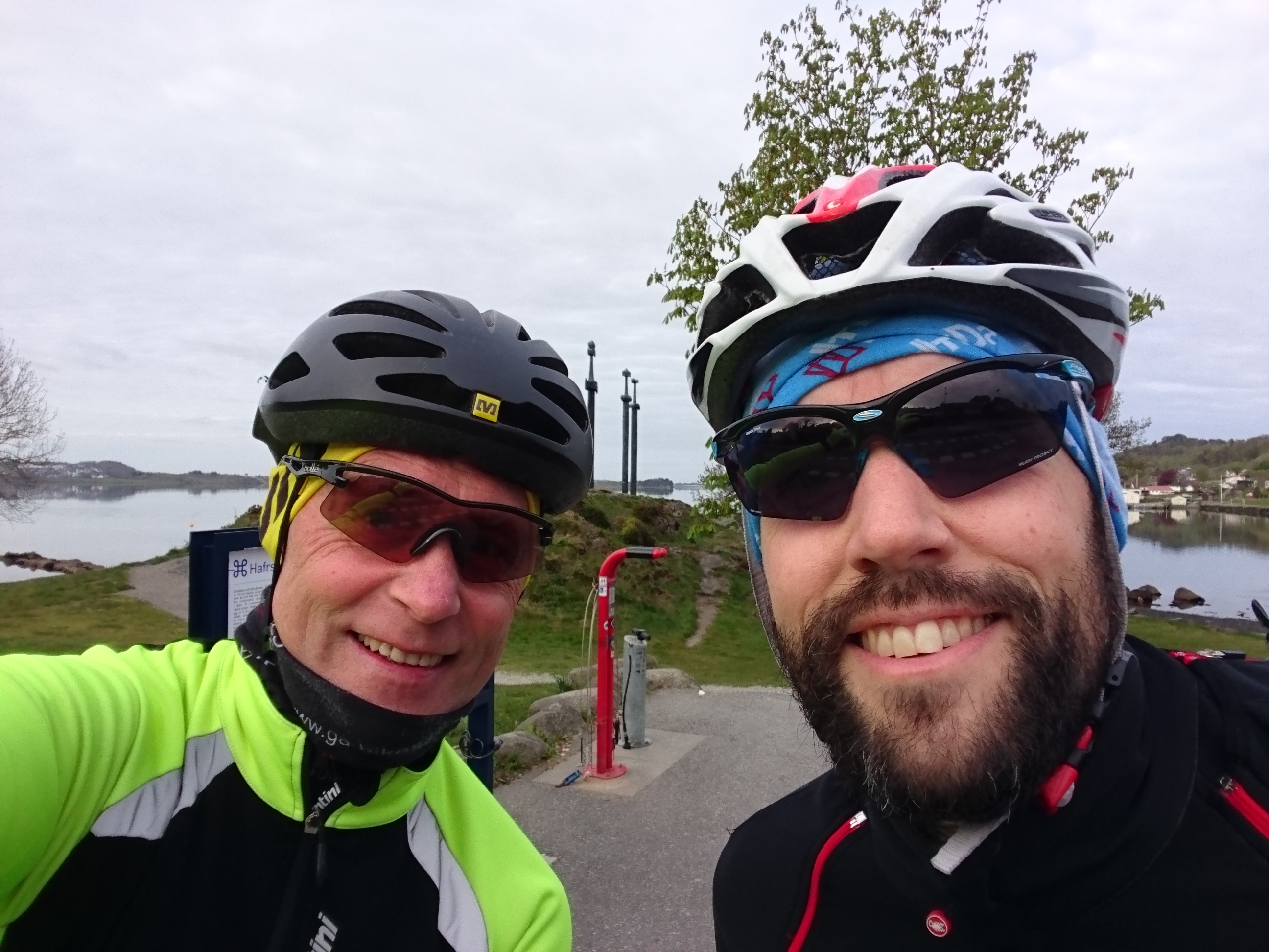 Ved skolen på Sviland sto Guro og Jarle og ventet på oss. Veldig kjekt å skulle få nytt selskap på turen. Guro hadde jeg kun truffet et kort øyeblikk på Jædar, og Jarle kjente jeg ikke fra tidligere. Kjente derfor ikke til de to sine sykkelegenskaper, annet enn jeg hadde sett at Guro jaktet på «KOM-er», altså segmentrekorder på Strava, og at Jarle var trener for Rynkeby Rogaland gjengen. Var de raske eller ikke? Hadde derfor i forkant sagt til Jens, at om de ikke var det, kunne han og jeg jo ligge i front og ta vinden meste av tiden. Slik skulle det ikke bli, viste det seg. Tvert om :).