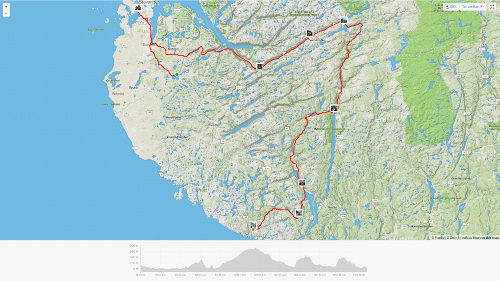 Lørdag 9/5 2020 kl. 07.30 skulle min første Brevet-tur, denne gangen en 300 km, starte ved Sverd i fjell, Stavanger. Jens Glad Balchen skulle også bli med denne gangen, og startet også opp ved Sverd i fjell. Denne gangen skulle vi få med «gjester» på deler av turen. Det var Guro Espeland og Jarle Egeland, som begge ville møte oss på Sviland, og som skulle følge oss til Egersund. Løypen var den samme, som jeg syklet solo i 2018. En fantastisk flott, men ganske krevende løype, som jeg hadde hatt fornøyelsen av å designe selv. Den var på 310 km og hadde litt over 3700 høydemeter.
