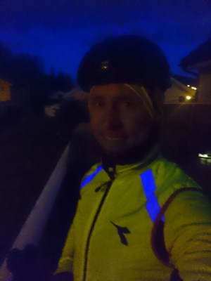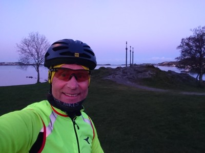 Veiene var tørre, så til tross for minusgrader var det ingen glatte områder å frykte. Også var det helt fantastisk å være igang på denne tiden av døgnet. Jeg hadde både veier og sykkelstier helt for meg selv, og kunne bare nyte omgivelser, lyder og lukter, og ikke minst følelsen av å være igang til tross for at kroppen ikke helt spilte med på lag.
