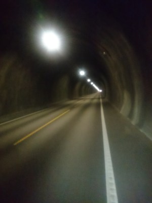 Til tross for god belysning i tunnelen, er det viktig selv å være godt opplyst og synlig. På strekninger med tunneler har jeg alltid kraftig belysning på sykkelen, og har jeg mørke klær på meg, har jeg i tillegg alltid en liten refleksvest på.