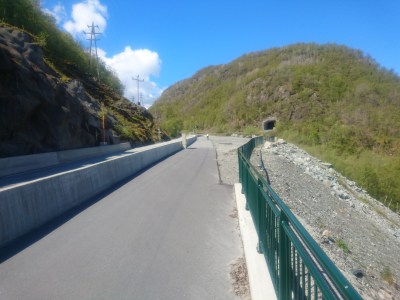 May-Brit ligger et stykke foran meg etter vi nettopp har syklet på utsiden av Røyrdalstunnelen. (Klikk på bildet for forstørrelse).