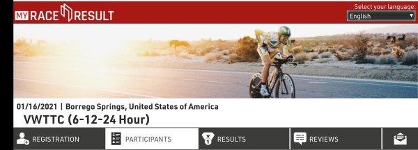 Påmeldingen til deltakelse i 24H vWTTC ble avsluttet 2. januar. Ifølge endelig oppdatert påmeldingliste er jeg eneste deltaker fra Norge, både i aldersgruppen 50-59 og rittet totalt. I aldersgruppen min er det 26 deltakere, hvorav to er fra Danmark. Antall deltaker, som skal sykle i 24 timer er 76, hvorav 16 er kvinner og 2 som sykler på liggesykkel.