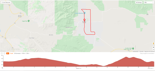 Løypen, som er 29 km lang og med 106 høydemeter, er en rundløype i Borrego Springs i California. Jeg syklet den in real life under mine forberedelser til min deltakelse i RAAM 2017, så da er jeg i kjente omgivelser.