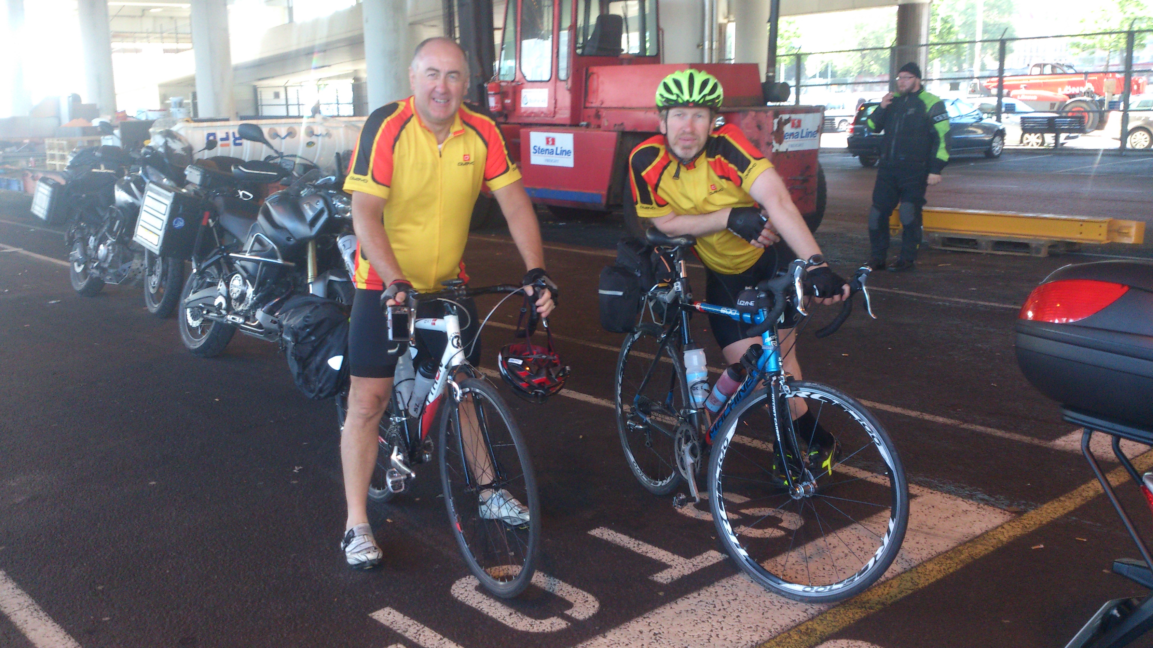 Her har vi fått sjekket inn og er klare for ombordstigning. Alle er glade og smilende. Været er fantastisk flott og det er god temperatur i luften til tross for det er tidlig på dagen. Nå ser vi fram til en veldig rolig sykkeltur fra Frederikshavn til Skagen og Grenen. I Skagen skal vi kose oss og se oss litt omkring, og være litt turister, før vi setter kursen mot Hirtshals og båten til Kristiansand. Avreise mot Norge skjer kl. 20.45.