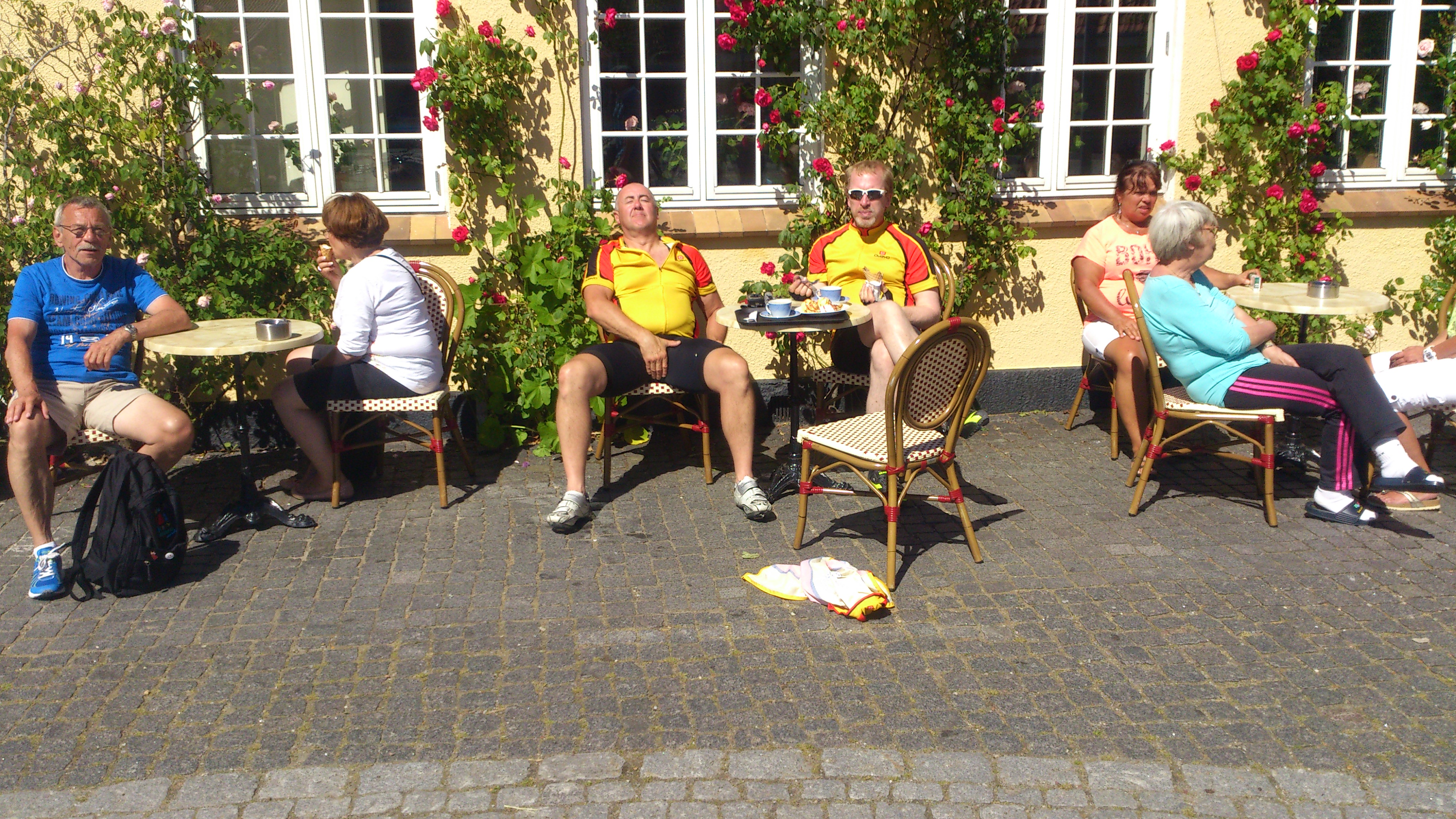 Bjørn Olav forsynte seg med kaffe og en «Gammendaws isvaffel» med ikke mindre enn 5 kuler, guff og flødebolle Humørikonet smile På meg ble det kaffe og to pannekaker med is og krem. Han Reidar derimot koste seg på litt annen vis han. Som bildet viser var han i sin helt egen Verden, hvor han hadde et skikkelig godt tak på «tingene». Smilet hans tyder på han har det godt der han sitter hehe 🙂