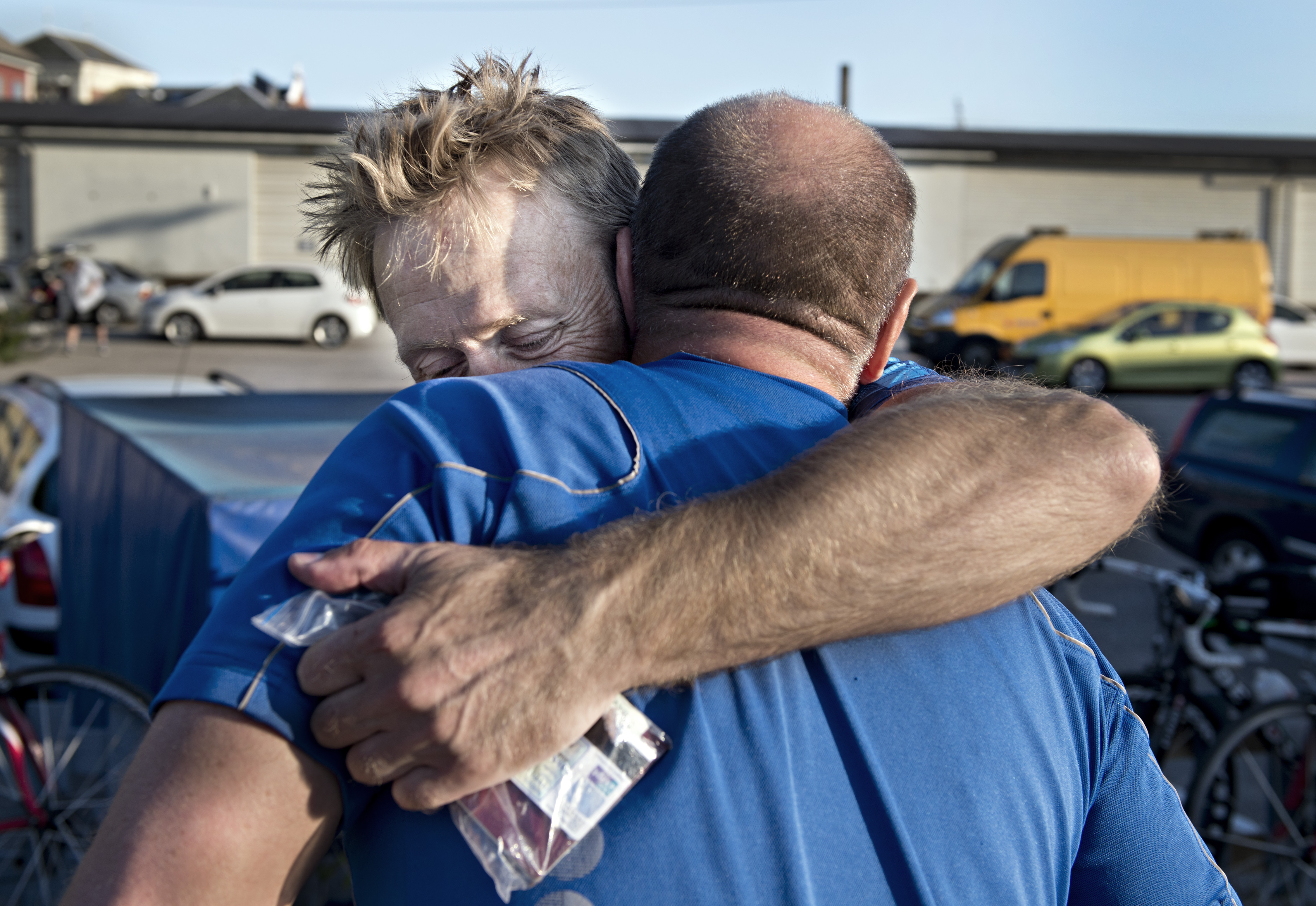 Vi var to super glade gutter på tur som endelig var i mål etter tilbakelagt 1200 harde km. Her får Reidar og jeg oss en super kram som takk for turen.