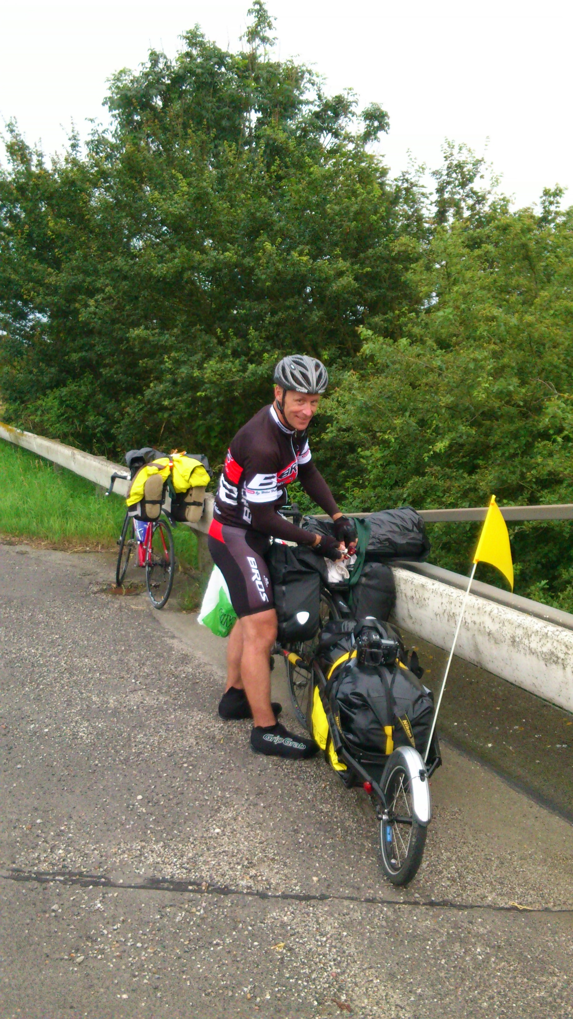 Norge-Kosovo 2012 10. februar 2015 1836 × 3264 2012-07-13 – Dag 3 – Danmark. Dagsrute: Glesborg-Kolding. Vi er ca. 40 km fra Kolding hvor vi skal overnatte. Innen lenge vil skumringen begynne å ta på, så vi må ha fyrt opp baklysene.