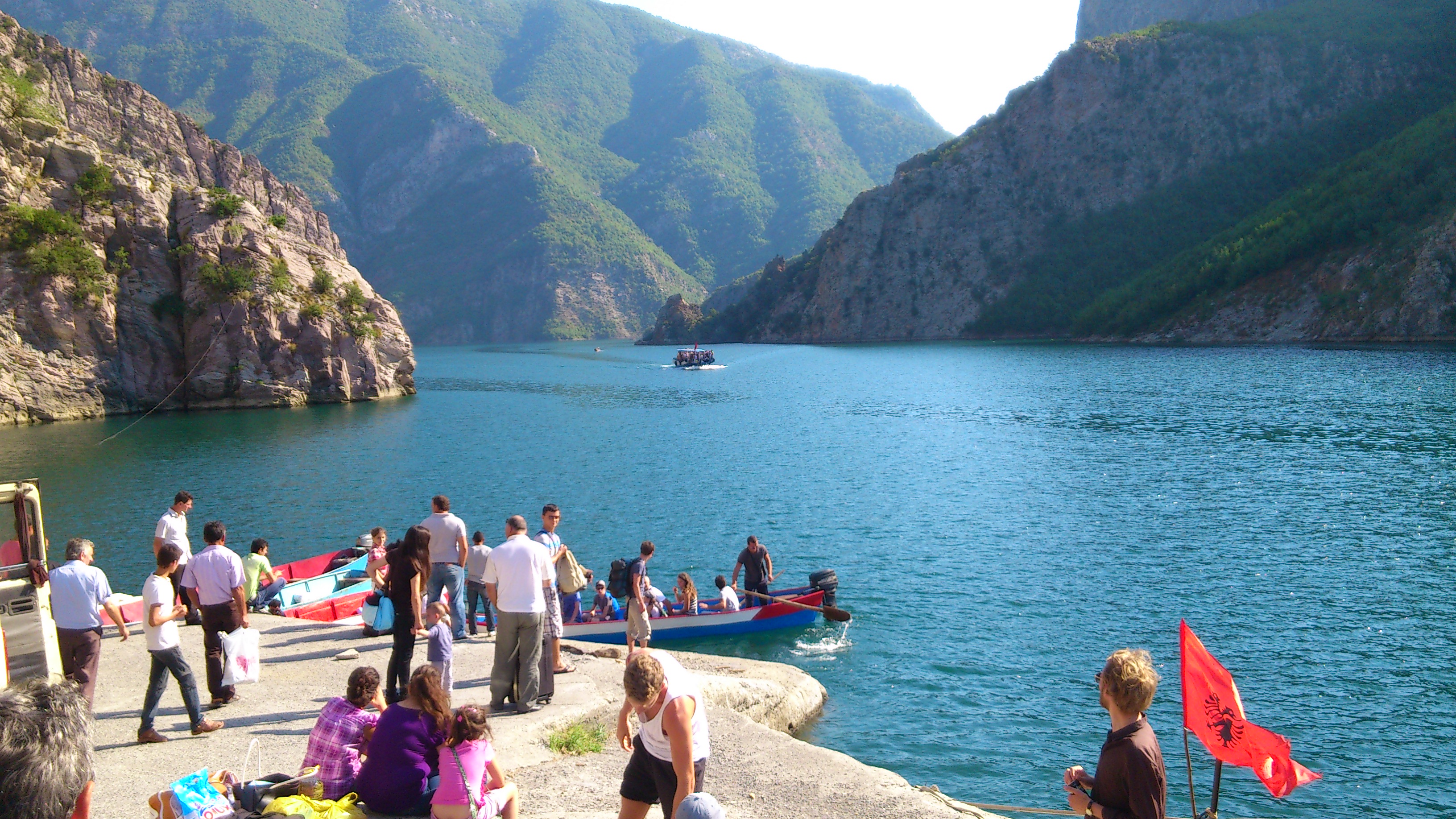 Vi skal nå seile noen timer opp av Koman-innsjøen, en kunstig oppdemmet sjø. Ferjeleiet ligger for enden av innsjøen hvor det også ligger en kjempe stor vannkraftstasjon. Store saker dette 🙂