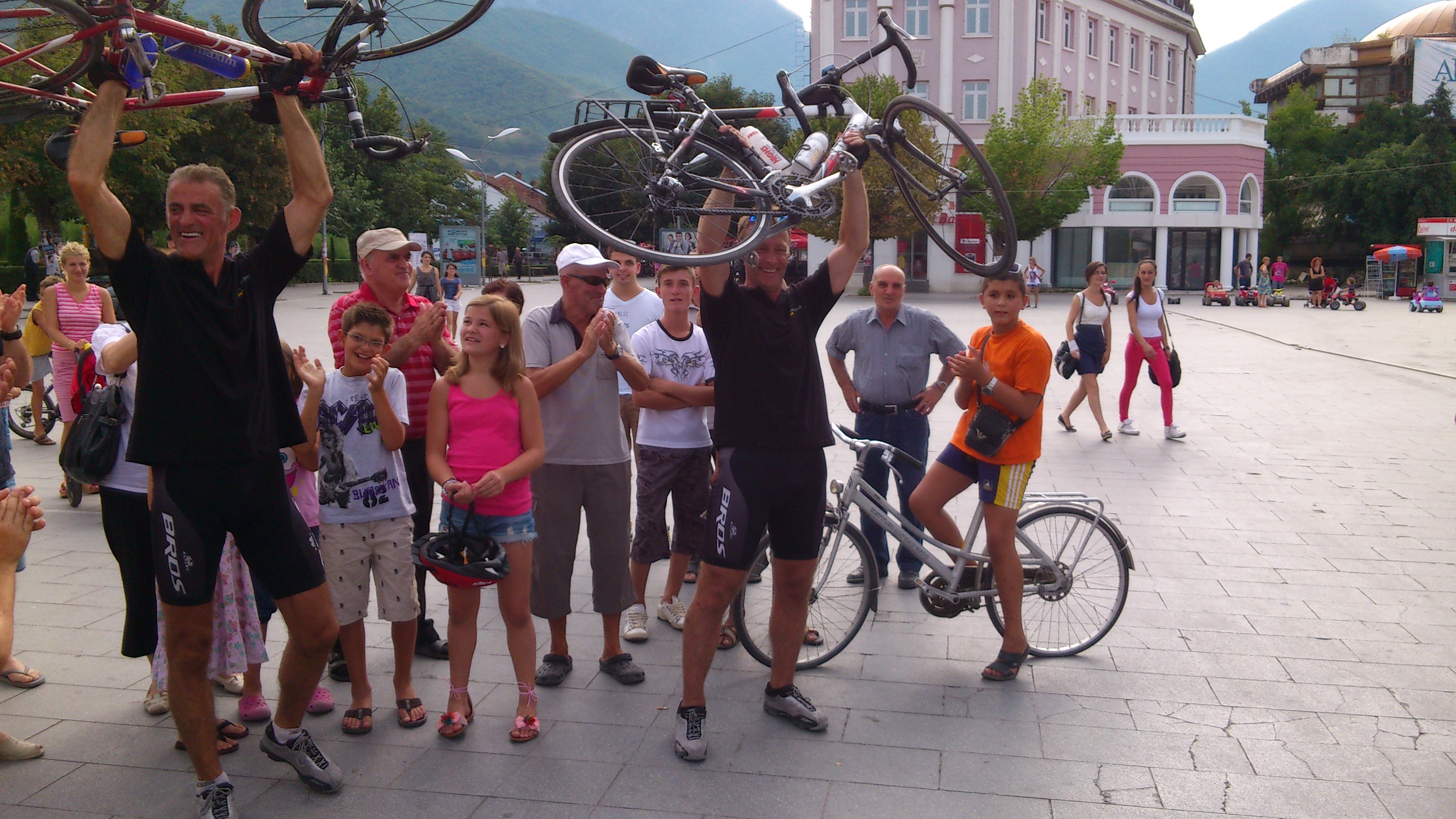 Norge-Kosovo 2012 10. februar 2015 3264 × 1836 2012-08-03 – Dag 24 – Peja, Kosovo. Dagsrute: Shkodër-Peja. Syklene våre måtte opp i luften. Faen så stolte vi var og med rette. Vi var og er knall råe, Ibrahim 🙂
